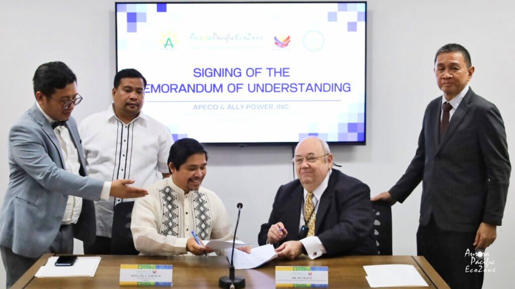 Under the MOU, Ally Power will undertake technical and investment studies for the project, while APECO will facilitate coordination within the ecozone in line with its mandate on sustainable development.