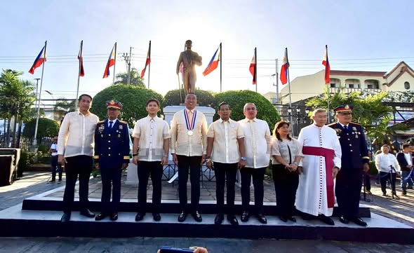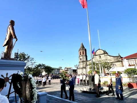 Pinangunahan ni San Juan City Mayor at National President of the League of Cities of the Philippines (LCP) Francisco Javier Zamora kasama si Bulacan Governor Daniel R. Fernando ang wreath-laying ceremony sa monumento ni Heneral Emilio Aguinaldo kaugnay ng pagdiriwang ng 127th Anibersaryo ng Pagkakatatag ng Unang Republika ng Pilipinas na ginanap sa makasaysayang Simbahan ng Barasoain sa Lungsod ng Malolos noong Enero 23, 2026. kuha ni: ERICK SILVERIO