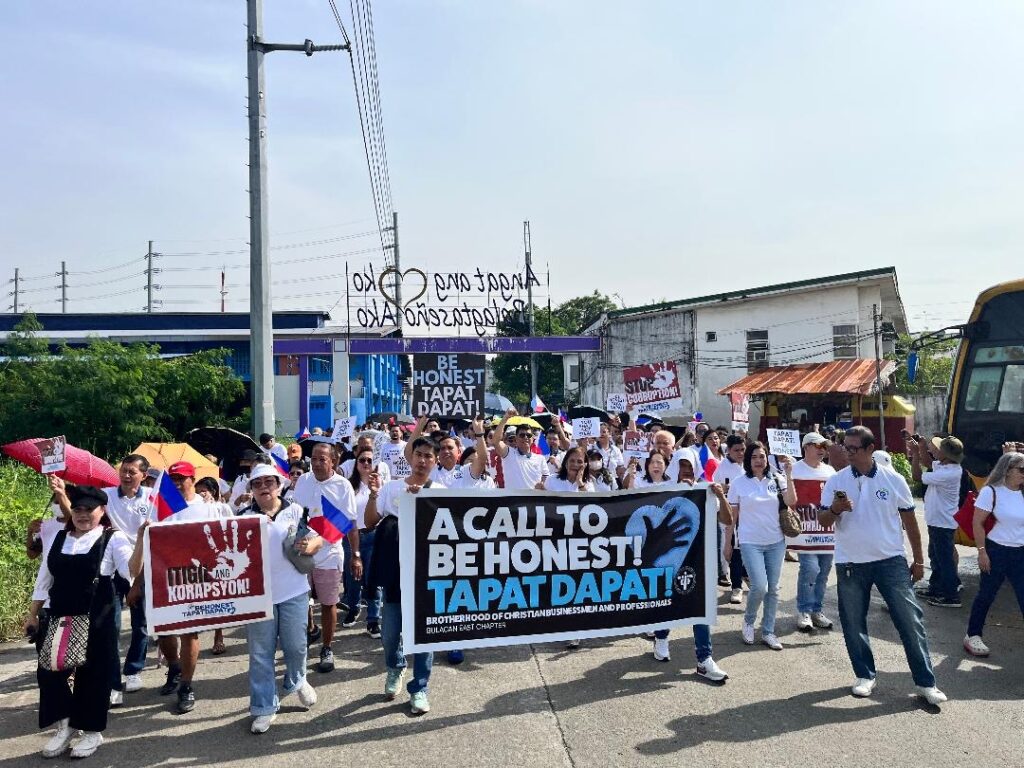 NAGSAGAWA ng anti-corruption walk at prayer rally ang nasa halos 2,000 residente mula sa iba’t-ibang grupo ng Katolikong Kristiyano sa bayan ng Balagtas, Bulacan upang ipahayag ang kanilang pagtindig kontra korapsyon kaugnay ng isyu sa ghost flood control projects sa bansa noong Sabado, Oktubre 4.