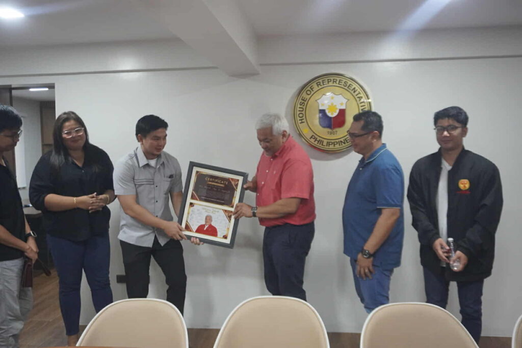 Pampanga First District Representative Cong Carmelo “Pogi” Lazatin, Jr. receives a Certificate of Appreciation from Angeleño Youth Leaders on July 10, 2025, presented by the Angeles City Youth Development Office (ACYDO), led by former SK President Arnoah Mandani.