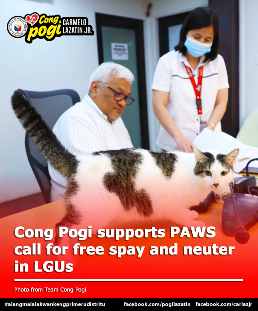 FIRST DISTRICT, Pampanga – Congressman Carmelo “Pogi” Lazatin, Jr. has expressed his support for the call of the Philippine Animal Welfare Society (PAWS) to promote free spaying and neutering services at the LGU level by offering tax and business permit rebates to private veterinarians who will offer the services for free.