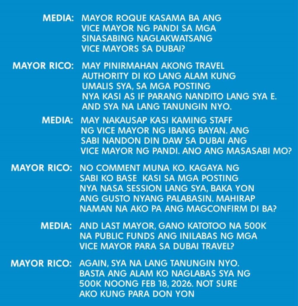 Base pa sa panayam, tinanong ang alkalde kung totoo na naglabas ng P500K na public funds ang mga vice mayor para sa naturang Dubai travel na kinumpirma ng alkalde na naglabas si Castro ng P500K.