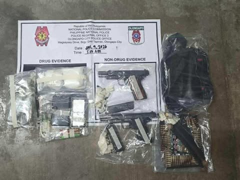 Led by the Regional Special Operations Group 3 – Regional Intelligence Division (RSOG3-RID) under PLTCOL Leo Madrid, with the overall supervision of PCOL Jay Baybayan, Chief RID and support from Olongapo City Police Office Police Station 1, the operation resulted in the seizure of two unregistered firearms—a .45 caliber pistol and a 9mm pistol, several magazines and live ammunition of various calibers, one fragmentation hand grenade, 305 grams of suspected shabu with an estimated standard drug price of ₱2,079,440.00 and around 113 grams of suspected kush valued at ₱169,500, along with assorted drug paraphernalia and weighing scales.