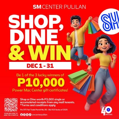 Be 1 of the 3 lucky winners of ₱10,000 Power Mac Center Gift Certificates! Shop or dine with ₱3,000 in single or accumulated receipts from any mall tenant to get a chance to win! Prepare your holiday wish list and fill your carts with great gift selections as the promo runs until December 31.